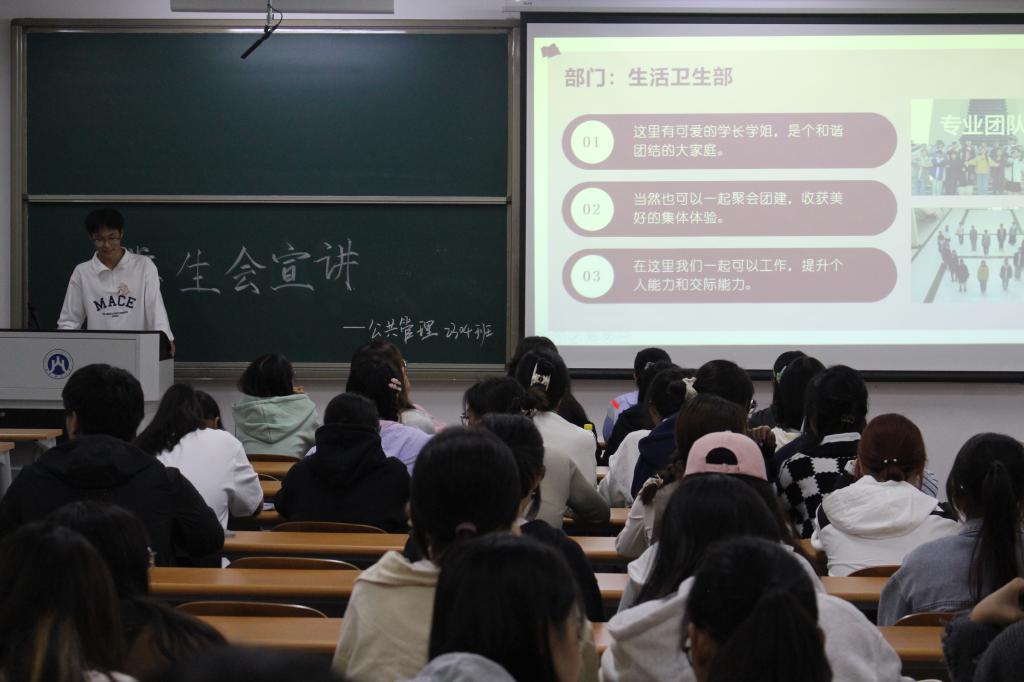 本次宣讲活动,各部门详细介绍了学生会的部门设置情况,为同学们展示了学生会“从学生中来,到学生中去”的宗旨和高效务实的工作作风。各部门准备了丰富多彩、详略得当的宣讲内容,如PPT、快闪视频等,从团建活动、职能分工等方面着手,真情实感地讲解了本部门独有的活动与魅力,深深吸引了23级同学们。宣讲时,各部门副部耐心细心地解答了同学们的疑惑,现场气氛融洽,让同学们感受到公管学生会大家庭的温暖与和谐。