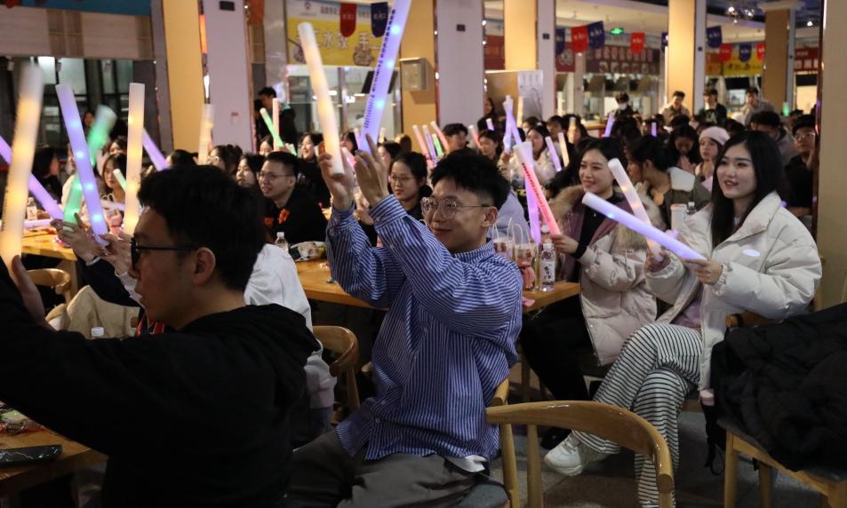 研会于燕山校区东苑餐厅二楼举办联谊晚会,研究生辅导员李昭娜、就业办主任韩步彤莅临现场,与研究生会全体成员共同观看演出。
