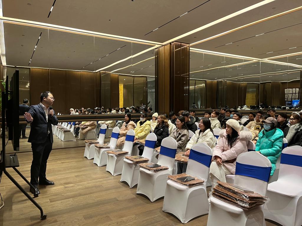 校友杨文静现场向学弟学妹们分享了求职的宝贵经验:虽然房地产行业发展现在略处低谷,但在这个阶段会对从业要求越来越严格,优胜劣汰是不变法则。”她提出两点建议,一要有持续学习的觉悟和能力,形成系统逻辑思维,为以后职业发展奠定基础;二要保持竞争思维,在内卷的时代,不断学习提升自己核心竞争力才是生存法则。启示同学们作为城市管理专业的学生,未来能够推动行业的技术创新,为城市的可持续发展提供有力支持。
