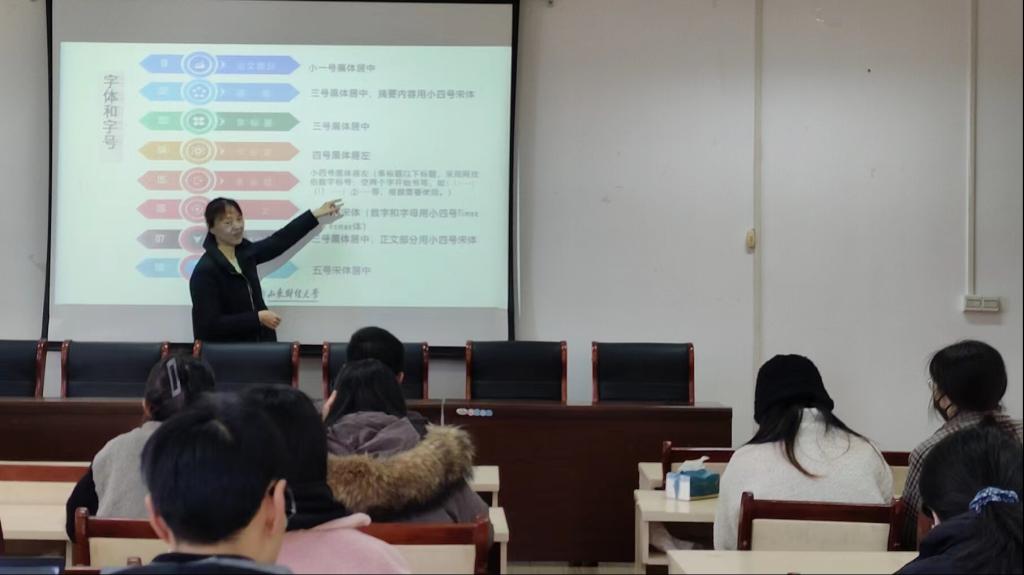 于11月29日上午在燕山校区4308教室举办了研究生论文写作规范讲座。本次讲座由张莹副教授主讲,2024届全体毕业生参加。