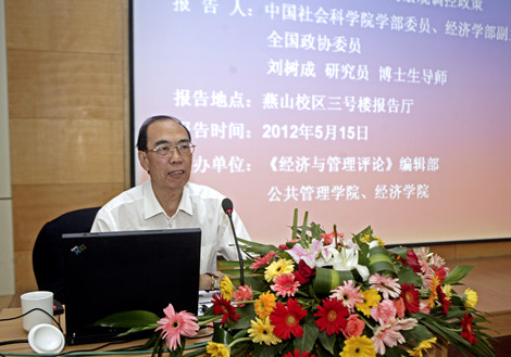 成立揭牌系列学术活动在燕山校区三号楼报告厅举行。中国社会科学院学部委员、经济学部副主任、全国政协委员、博士生导师刘树成研究员应邀为我校师生做了题为“中国宏观经济波动与宏观调控政策”的学术报告,副校长崔友平主持了报告会。
