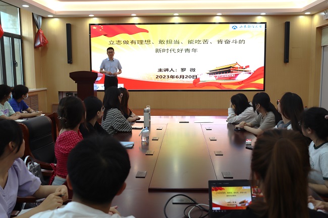 为深入开展学习贯彻习近平新时代中国特色社会主义思想主题教育,6月20日下午,副院长罗微在圣井校区8128会议室为学生第二党支部全体党员做了题为“立志做有理想、敢担当、能吃苦、肯奋斗的新时代好青年”的主题党课。