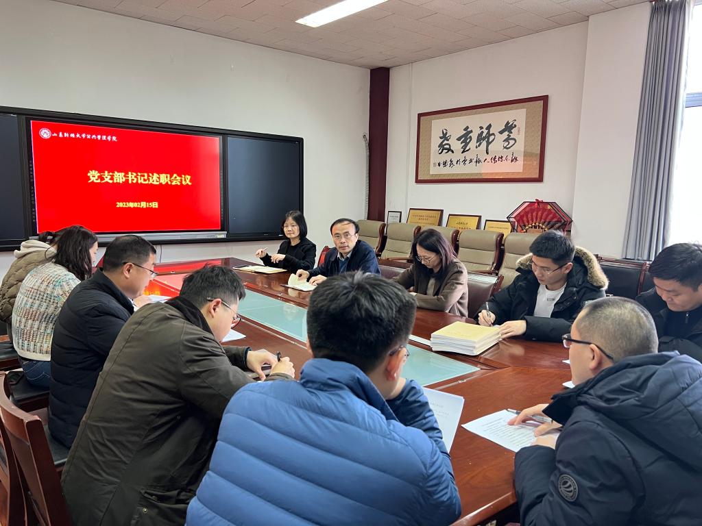 为深入学习贯彻党的二十大精神,夯实基层党建工作,推动学院党建工作提质增效,2月15日下午,学院党委召开2022年度党支部书记履行全面从严治党责任和抓基层党建工作述职评议会。会议由党委书记张建主持,党委副书记、院长贾海彦、党委副书记许薇、各党支部书记参加会议。