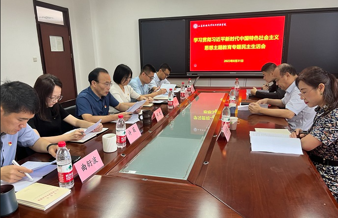 8月31日上午,学院党委召开学习贯彻习近平新时代中国特色社会主义思想主题教育专题民主生活会。学校党委副书记张培国,学校民主生活会指导组成员、学生处副处长孙丽华,党委组织部陈子东到会指导。学院党委书记张建主持会议,党委班子成员参加会议。