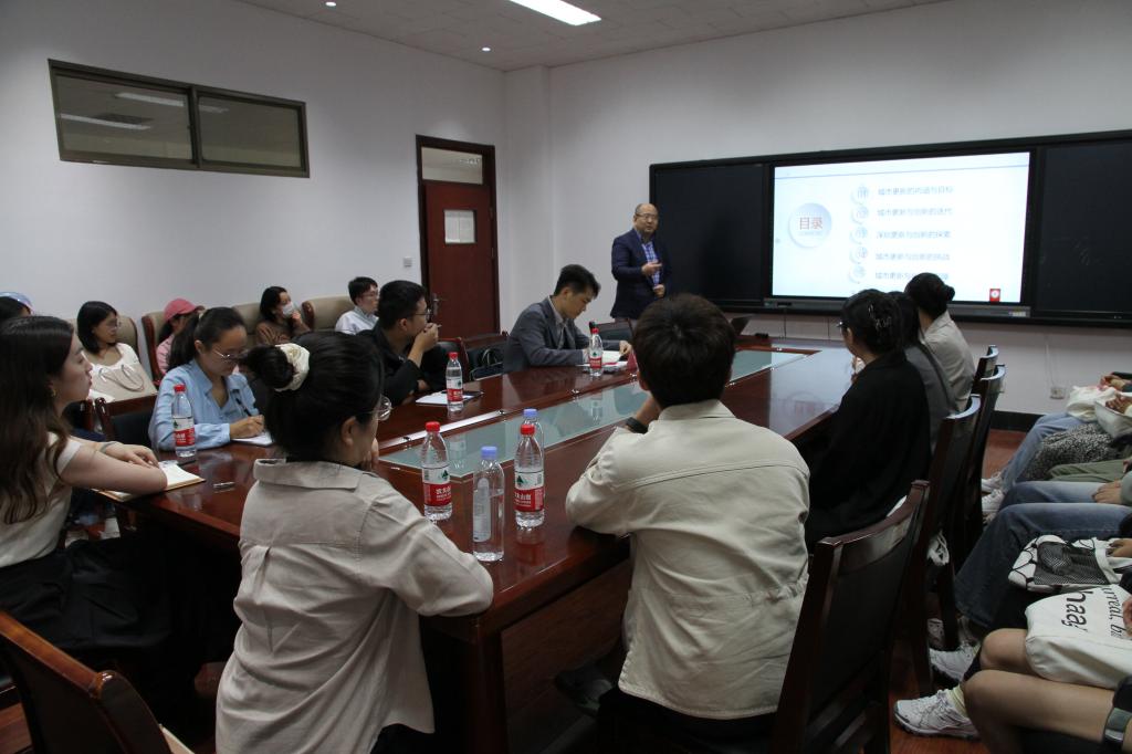 陆军教授以城市管理的经典书籍《美国大城市的死与生》为开端,按照“内涵—迭代—挑战—保障”为逻辑主线,介绍了城市更新的发展历程与背后的影响机理;同时,陆教授以深圳市城市更新与创新的探索为例,阐述了深圳在城市更新过程中的创新方式,并点明了可能存在的潜在问题,也指出了未来城市更新过程的保障措施。讲座最后,曲衍波副院长以陆军教授的报告为例,从经典理论、研究逻辑、案例分析、知识储备等方面,告诉参会教师和研究生今后如何开展高质量的科研工作,并对陆军教授的精彩报告表示感谢。