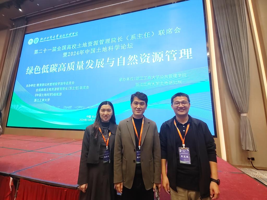 曲衍波副院长携城市与土地资源管理系张丝雨、王立业等教师参加会议。本次会议由教育部公共管理教学指导委员会、全国高校土地资源管理院长(系主任)联席会、《中国土地科学》编辑部、浙江工商大学主办,由浙江工商大学MX动漫