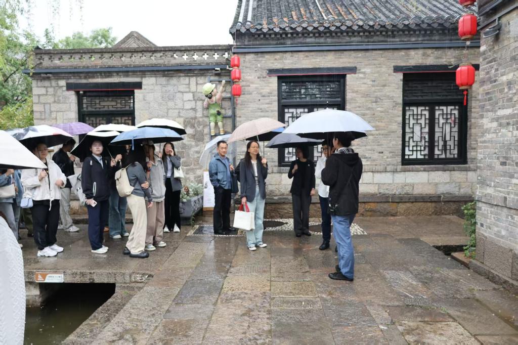 在曲水亭街社区,师生们参观了历史建筑与文化景点,深入了解社区的历史文化背景和治理模式。细雨中的曲水亭街整洁有序,传统风貌与现代管理相得益彰,展现了济南“山泉湖河城”的独特魅力。城市管理系学生张文源感慨:“济南颜值的提升有目共睹,这次活动让我们真切体会到城市管理工作的细致与不易,我们对济南城市管理者的辛苦有了更深体会,希望能有更多机会参与到城市管理、社区管理工作中。”
