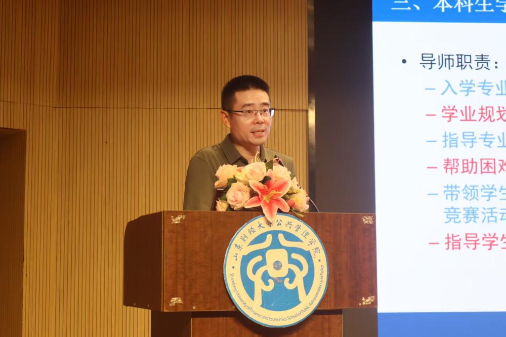 贾海彦向各位新生家长致以热烈祝贺与诚挚欢迎,系统介绍了学院的历史沿革、师资力量、学科建设成果以及人才培养成效。她表示,学院始终坚持以培养“文理并济、科学创新、国际视野、人文情怀”为一体的拔尖创新型人才为目标,全力推进“交叉融合、特色鲜明”的“公管+”高质量发展路径。结合新生成长需求,贾海彦向家长提出三点建议:一是做好学生成长路上的陪伴者,与学生共同学习、共同进步;二是注重学生品德修养,引导学生树立远大志向,在价值引领中夯实人生基础;三是与学校教育紧密配合,凝聚育人共识,协同促进学生健康全面发展。