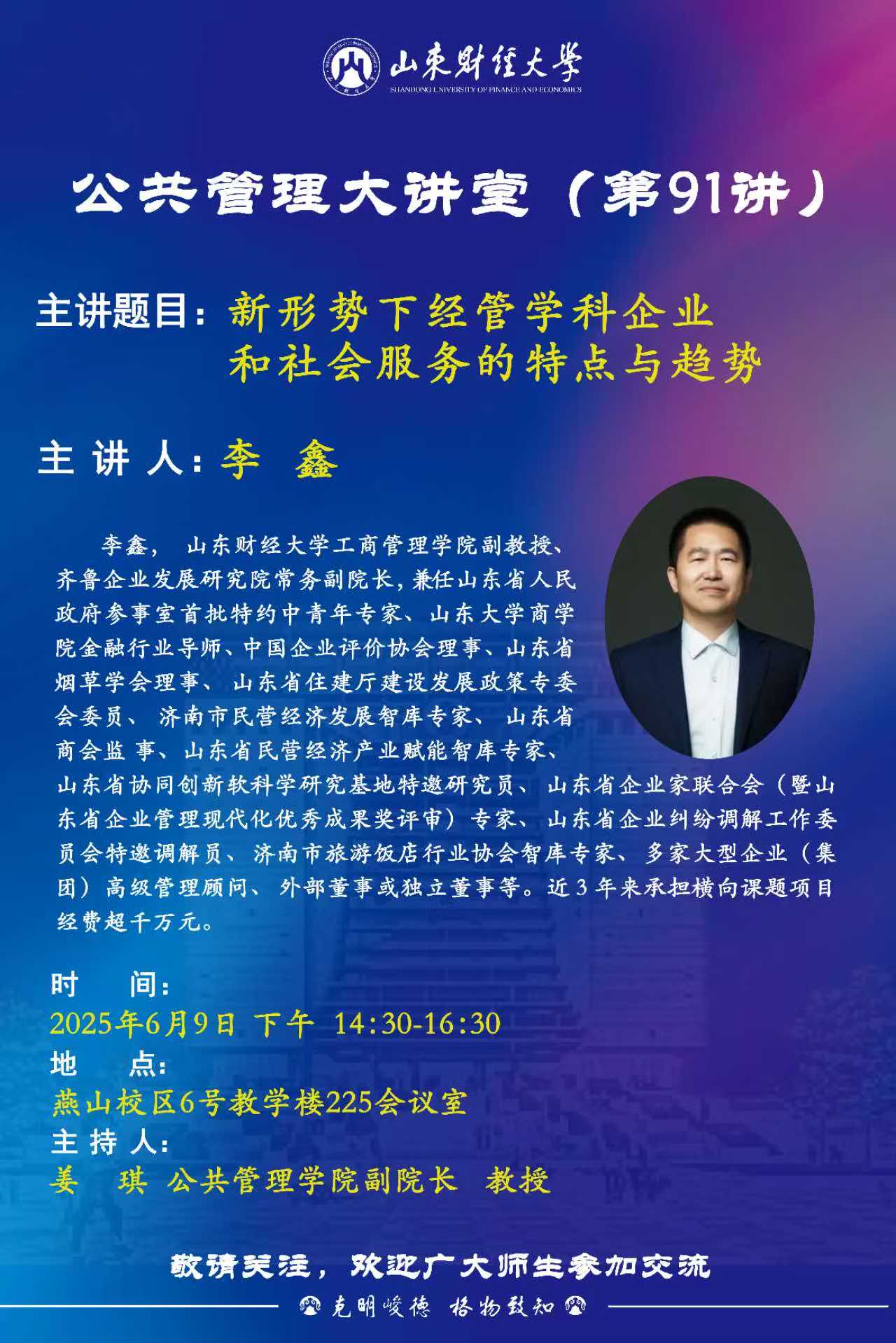 公共管理大讲堂(第91讲) :新形势下经管学科企业和社会服务的特点与趋势