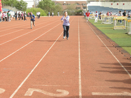 李昭娜老师,在800米比赛中勇夺第一,200米比赛中获得第二,她是这赛场上别样的风景。