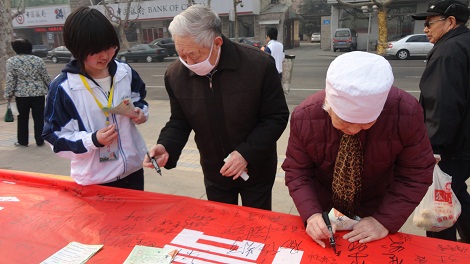 上午8点,全体成员到达百脉泉广场,开始了大规模的宣传活动。其活动的形式多种多样,主要由万人签名、向群众普及维权知识的环节组成。活动过程中,全体成员用饱满的热情积极向市民们讲解维权知识,不管是中老年人还是年轻人都对此次活动投以极大的支持,并在无形中向我们讲述他们的消费心理,我们在认真倾听的同时活动的意义更加深了一步,真正达到了与消费者面对面的深入交流。中午11点整,签名横幅早已密密麻麻,它不仅展示着消费者和同学们防假辨假、真正维权的热情和祝愿,同时也标志着此次活动的圆满完成。
