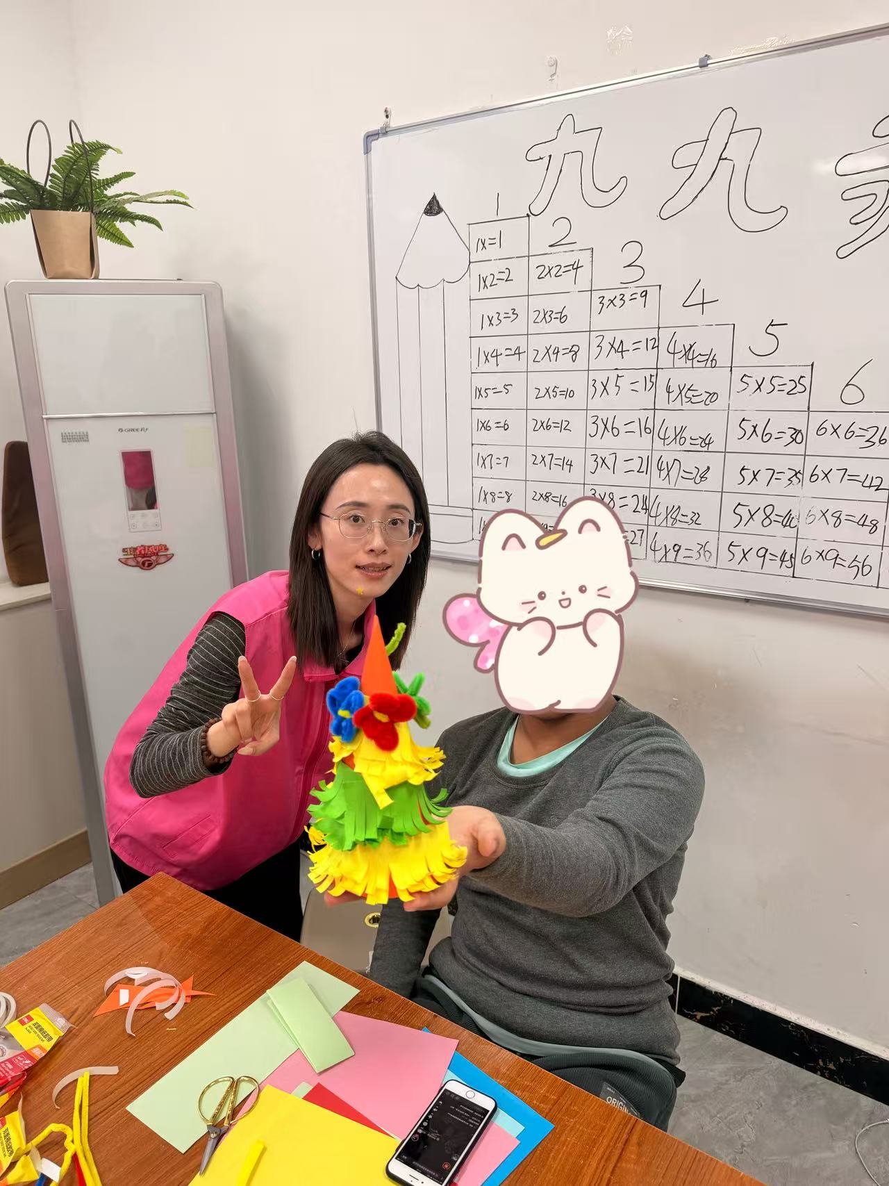 活动现场,志愿者分组协作,开展一对一陪伴服务。志愿者与服务对象围坐在一起自我介绍,快速消除陌生感、建立信任;双方一对一搭档,运用各类材料制作手工作品,在默契协作中深化交流、升温情感;大家还共同参与趣味竞技游戏“眼疾手快”“纸杯城堡”和“锤锤锤”,现场氛围热烈欢快。活动尾声,小组成员献上了精彩的才艺表演。
