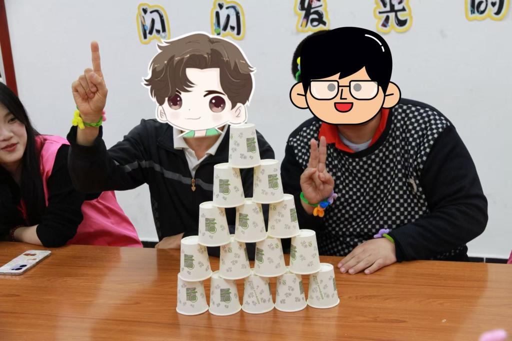活动现场,志愿者分组协作,开展一对一陪伴服务。志愿者与服务对象围坐在一起自我介绍,快速消除陌生感、建立信任;双方一对一搭档,运用各类材料制作手工作品,在默契协作中深化交流、升温情感;大家还共同参与趣味竞技游戏“眼疾手快”“纸杯城堡”和“锤锤锤”,现场氛围热烈欢快。活动尾声,小组成员献上了精彩的才艺表演。